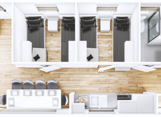 Arkýř na štítové stěně dal celé podobě nebývalý tvar, ale především výrazně zvětšil plochu obývacího pokoje. Kromě toho je kuchyň integrována do chodby domu, stala se další místností, aniž by ztratila nejdůležitější funkce.