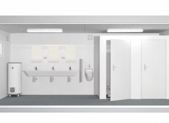 Sanitární kontejner MS-S8 lze použít samostatně nebo jako jeden z prvků větších modulových staveb. Nejčastěji se montuje společně s kancelářskými kontejnery, ve kterých je realizována šatna pro zaměstnance.